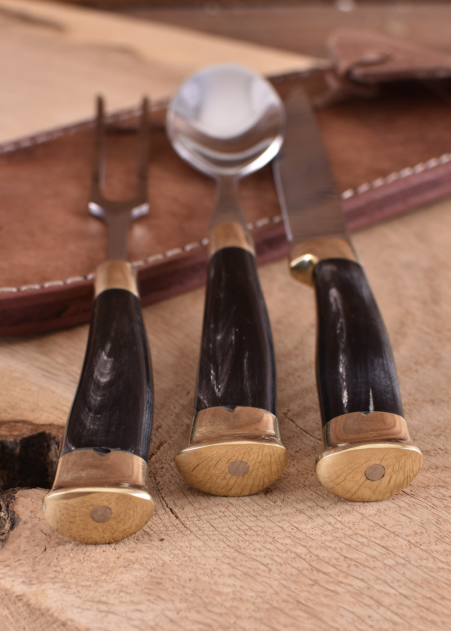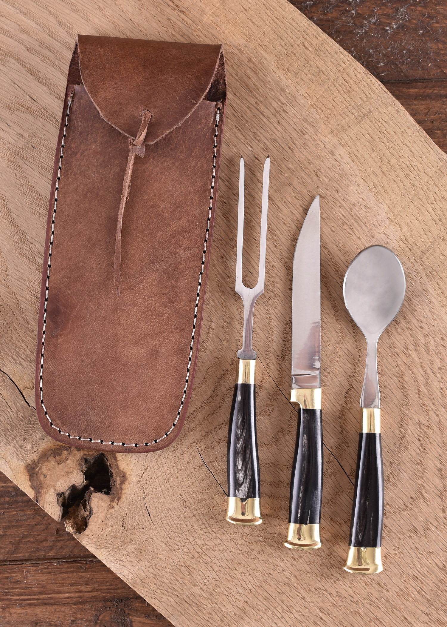 Dieses Besteck kommt mit einer authentischen Lederscheide.
