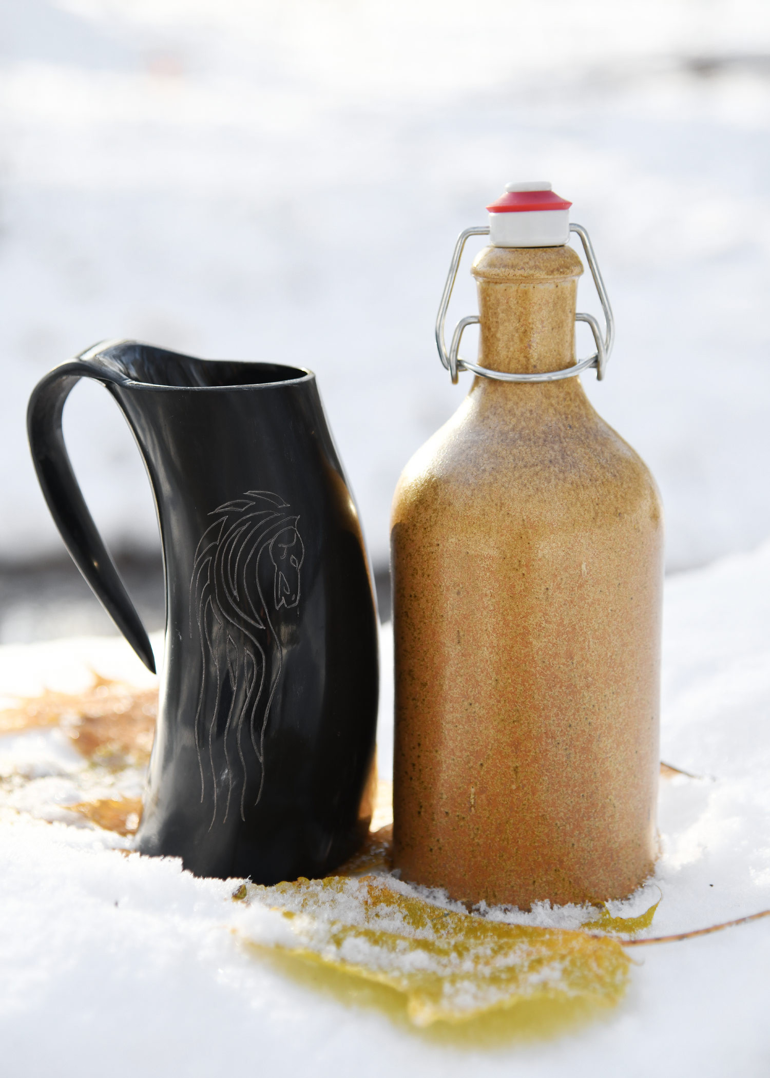 Der Hornkrug ist aus hygienischen Gründen von innen lebensmittelecht lackiert. So kannst Du Dein Lieblingsbier (oder Deinen Lieblings-Honigwein / -Met) in vollen Zügen genießen.