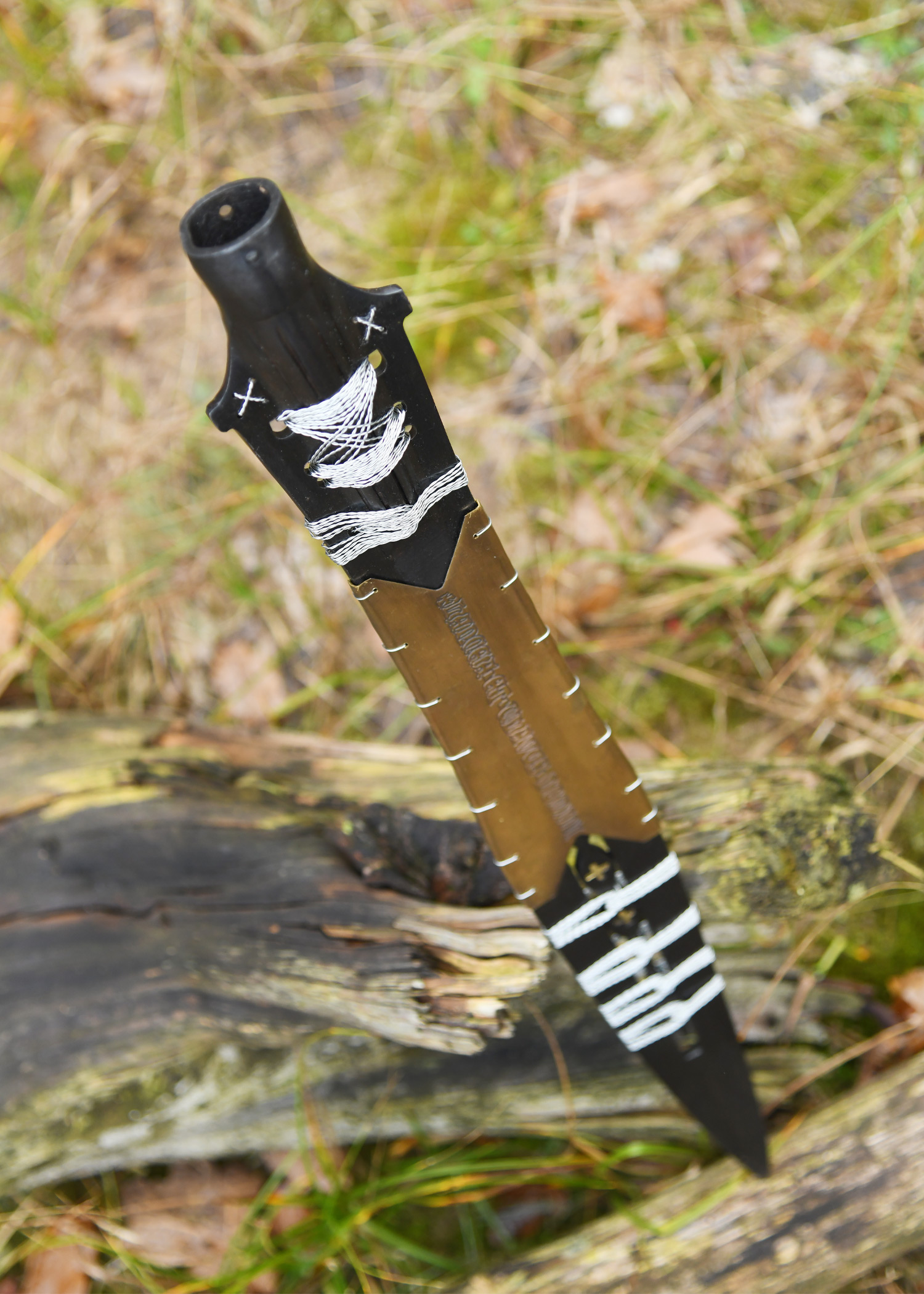 - Material: Stahl, mit Silberdraht umwickelt und Messingblech verziert