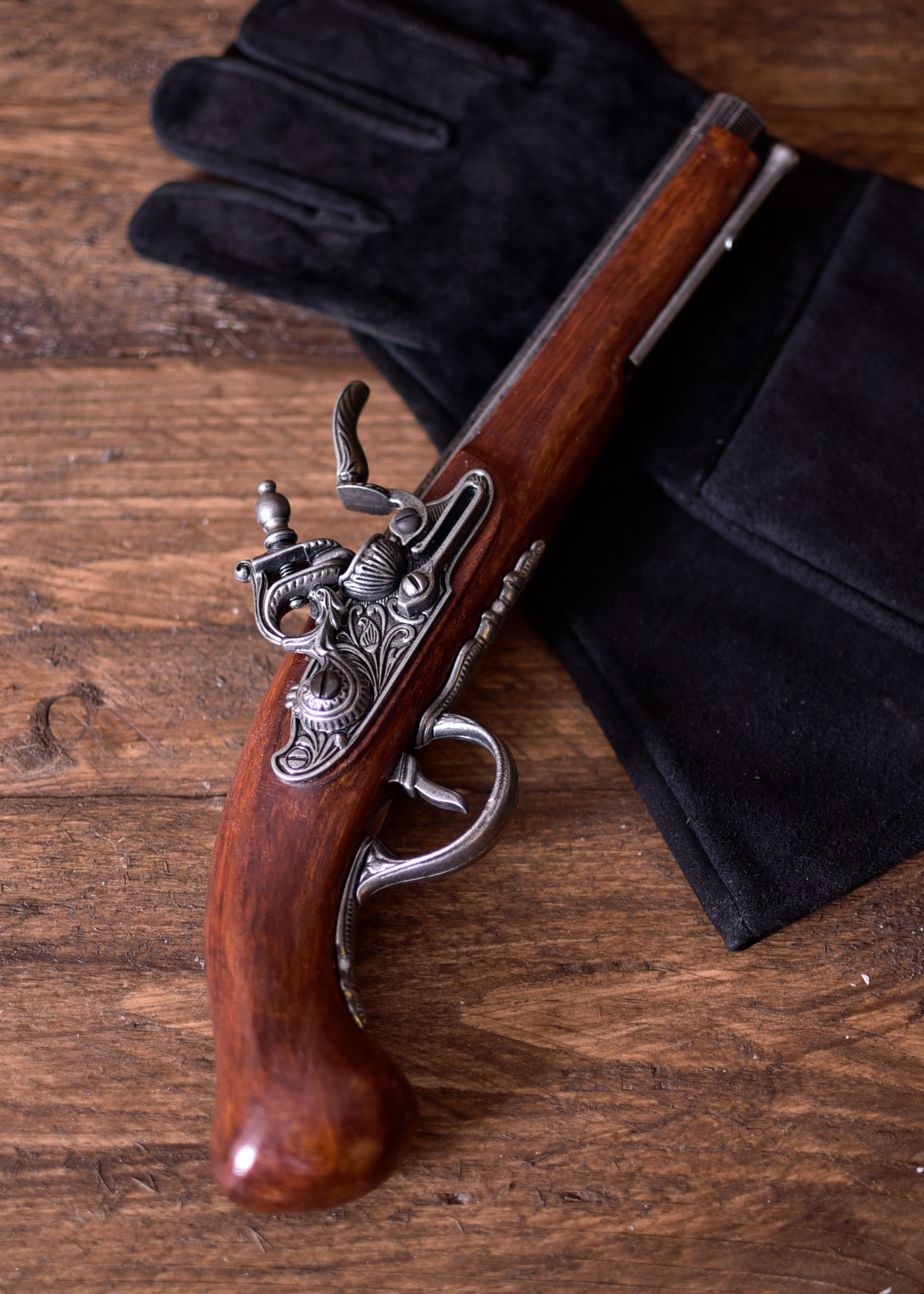 Unsere Feuerwaffen-Repliken dienen ausschließlich - und Dekorationszwecken. Die Mechanik der Pistole ist voll beweglich, jedoch ist diese Reproduktion nicht funktionsfähig. Der Ladestock ist fest verbaut.