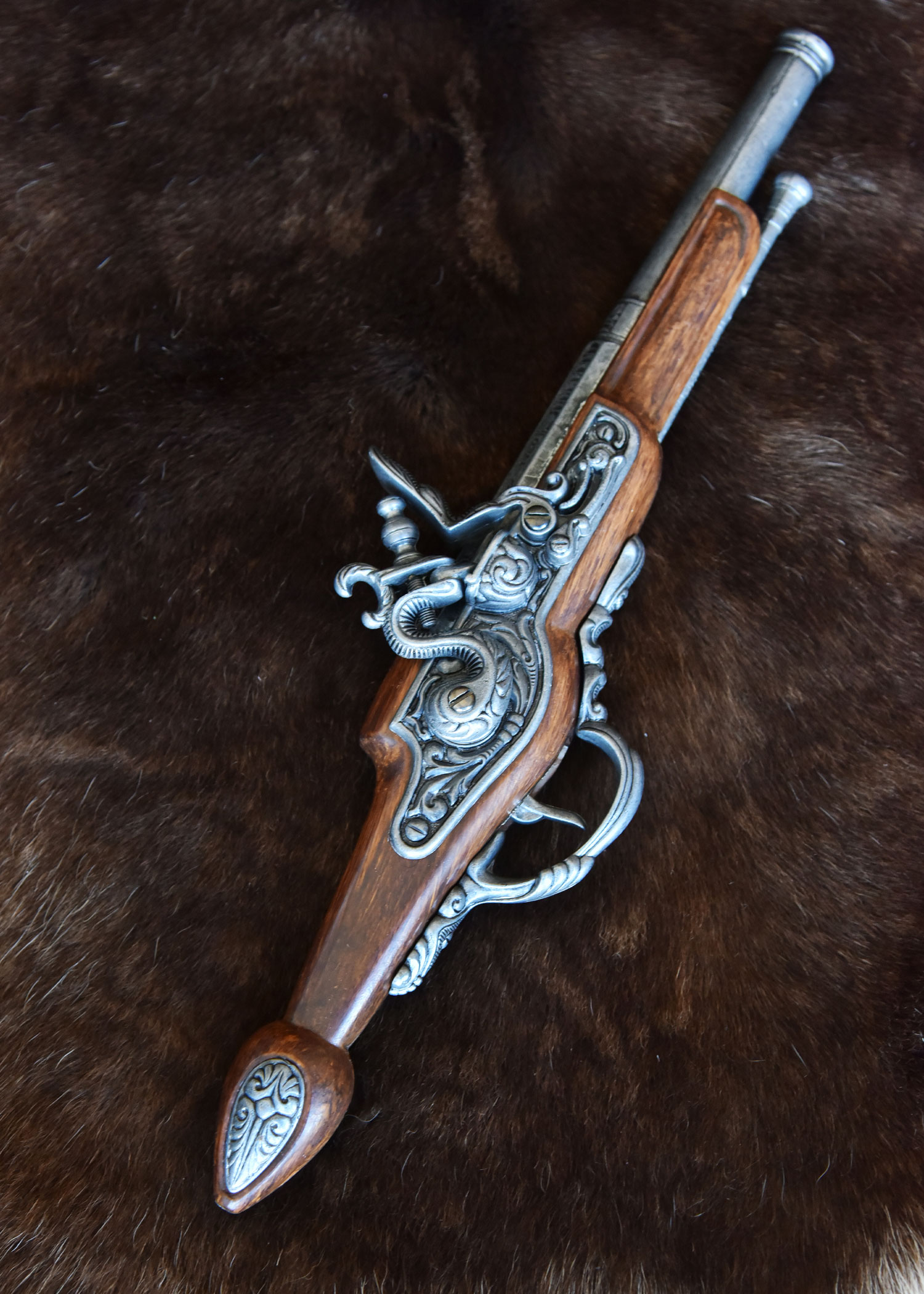 Unsere Feuerwaffen-Repliken dienen ausschließlich - und Dekorationszwecken. Die Mechanik der Pistole ist voll beweglich, jedoch ist diese Reproduktion nicht funktionsfähig. Der Ladestock ist fest verbaut.