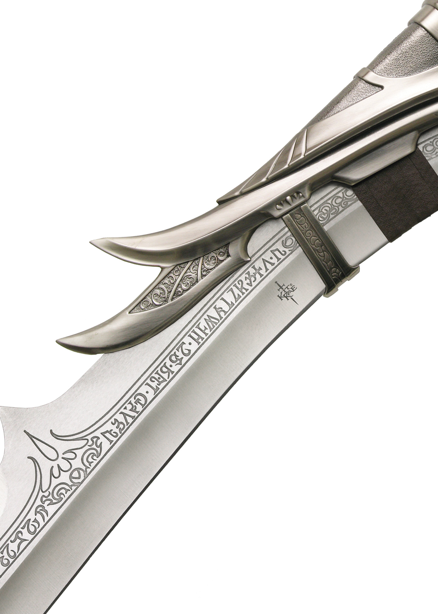 Jedes Schwert besitzt eine ungeschärfte Klinge aus Edelstahl 420 und sehr detalierte Griffbeschläge aus Metall, die nach den strikten Vorgaben des Designers hergestellt wurden. Der Griff ist mit Leder umwickelt und die Klinge besitzt eine wunderschöne, eingeätzte Runeninschrift.