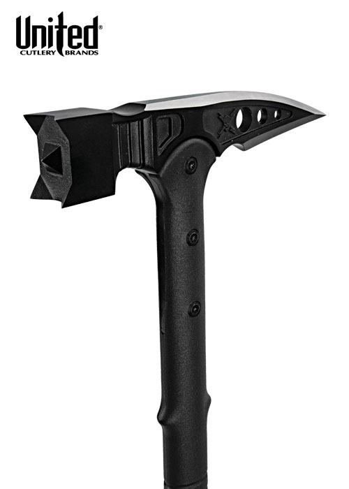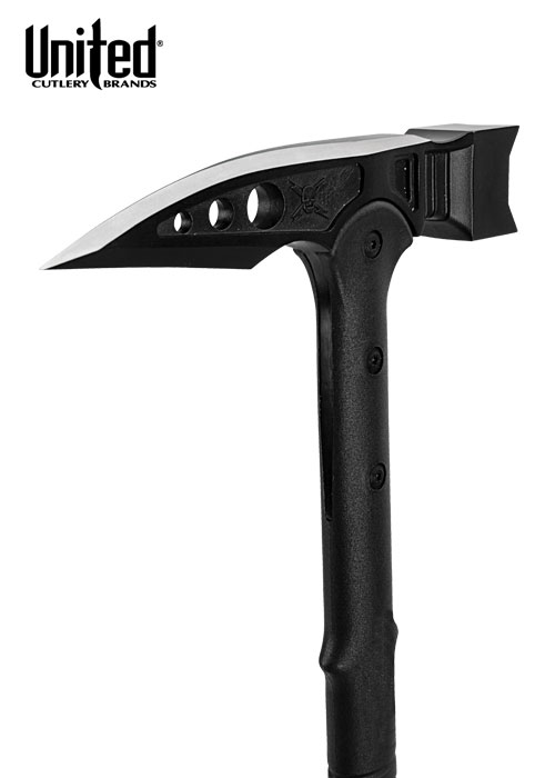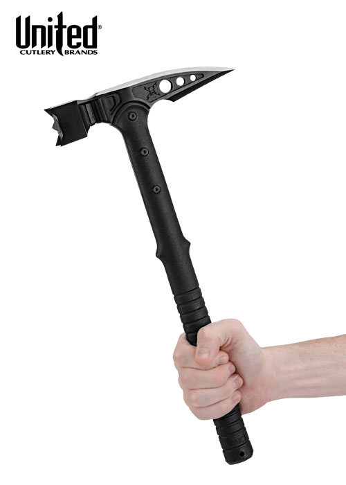 Der M48 Tactical War von United Cutlery ist die perfekte Hammer--Kombination! Sein aus rostfreiem Stahl 2Cr13 gegossener Kopf mit schwarzer Beschichtung kann fast alles problemlos bezwingen. Mit seinem schlagkräftigen Hammerkopf und seinem spitzen Stachel an der Rückseite bietet er großartige Anwendungsmöglichkeiten als wirksames Bruchwerkzeug. Der aus 30% Glasfaser bestehende Griff ist mithilfe von Metallschrauben mit dem Kopf verbunden.