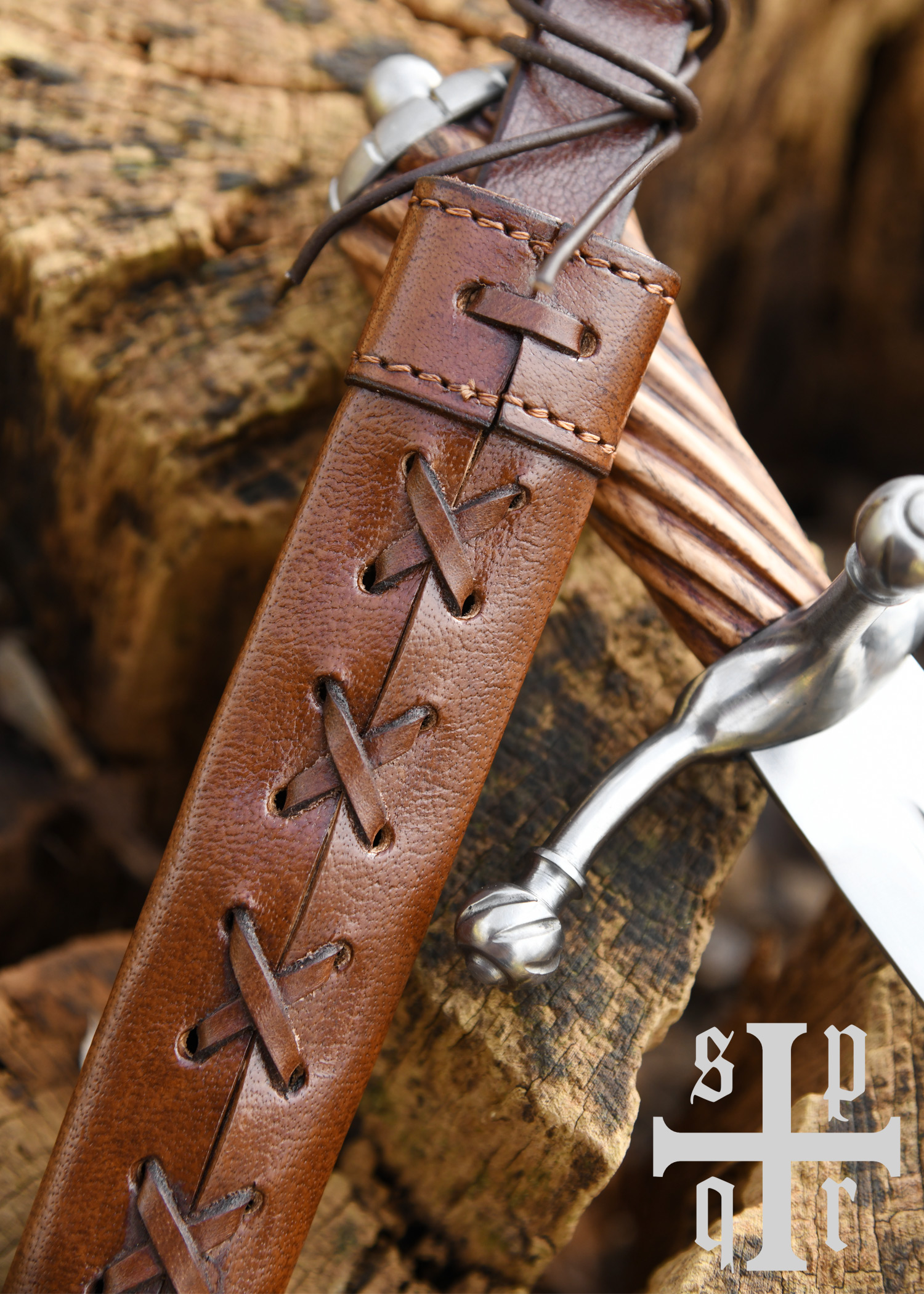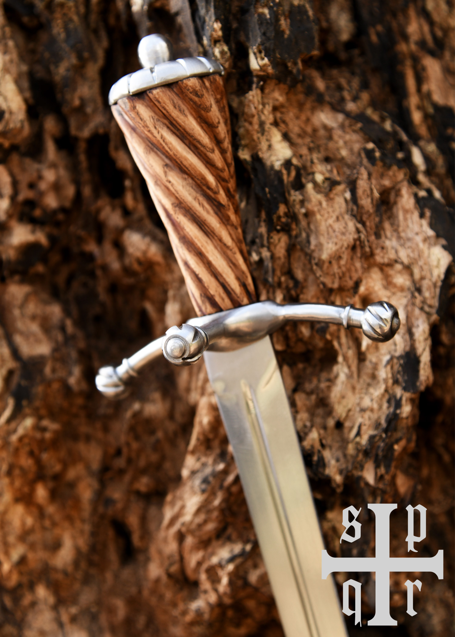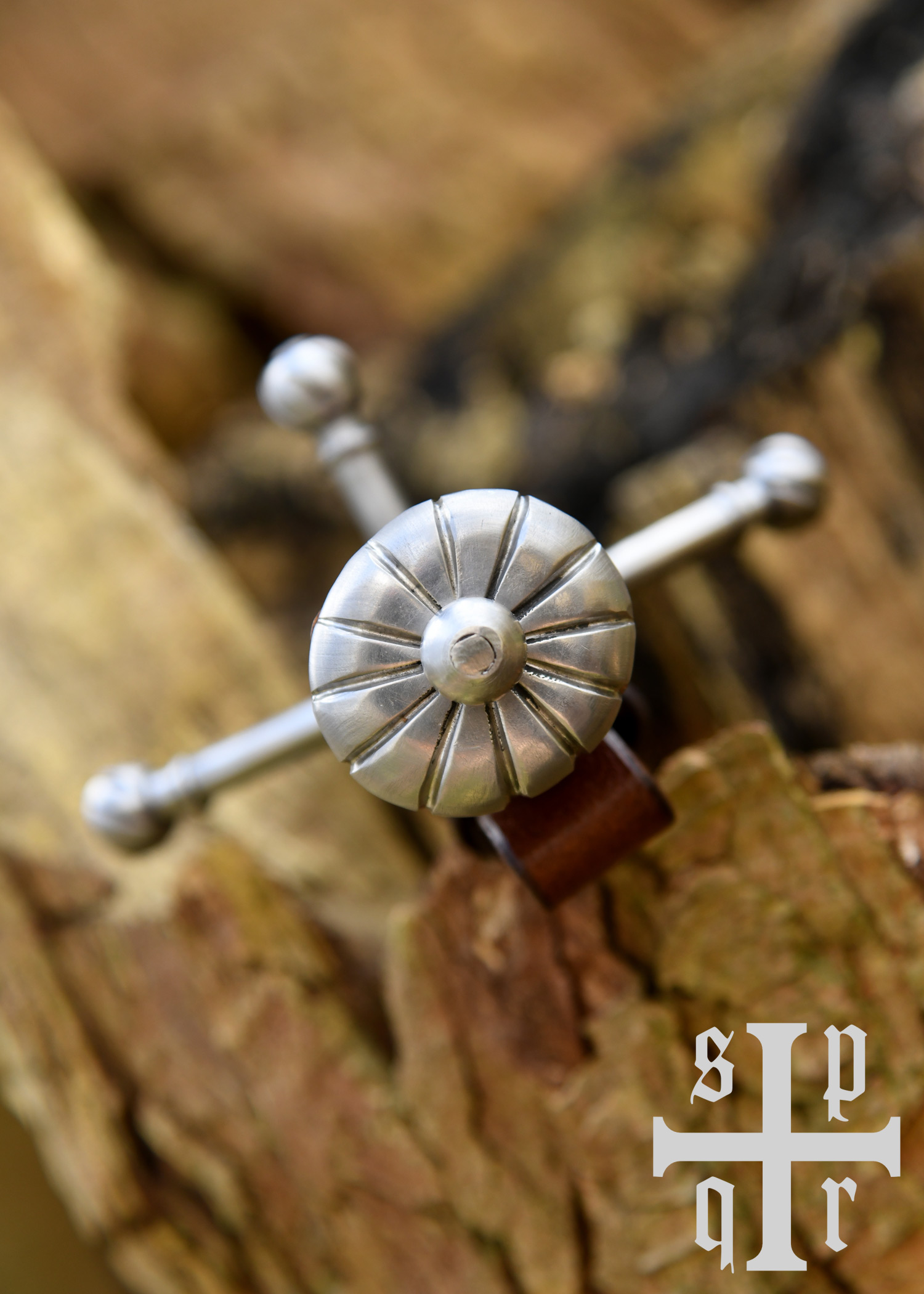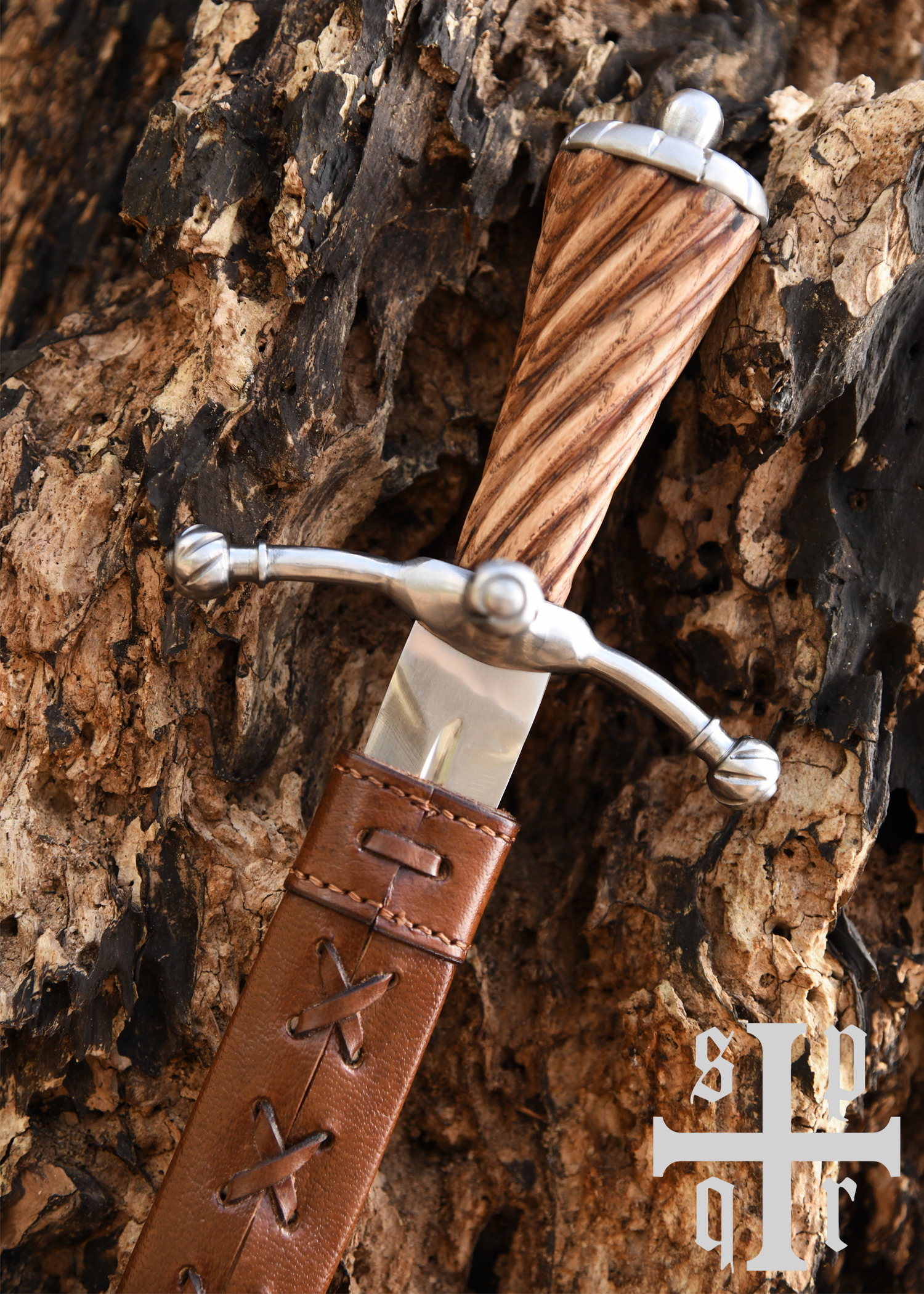 Dieser wunderschöne spätmittelalterliche Dolch besitzt eine gehärtete, auf ca. 48-50 HRC angelassene Federstahlklinge mit durchgehender Angel. Die Hohlkehle verläuft beidseitig über etwa zwei Drittel der Klingenlänge. Der leicht nach vorne gerichtete Handschutz aus Stahl besteht aus drei Armen mit kugelförmigen, gerillten Enden, und der elegante Holzgriff schließt mit einem ebenso stilvollen Stahlknauf ab. Die schöne Scheide aus vegetabil gegerbtem Leder ist mit einer Gürtelschlaufe ausgestattet.