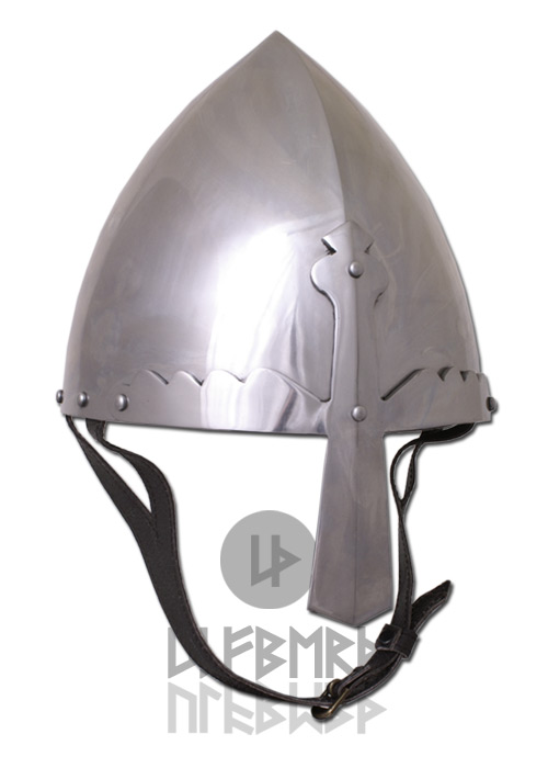 Voll schaukampftaugliche und authentische Replik des sogenannten Wenzelhelmes, nach einem Fund in Prag aus dem 10. Jahrhundert. Diese Helme wurden normalerweise zusammen mit einer Bundhaube und einer Kettenhaube getragen. Wir bieten den Helm daher in zdrei Größen mit ausreichend Platz an.