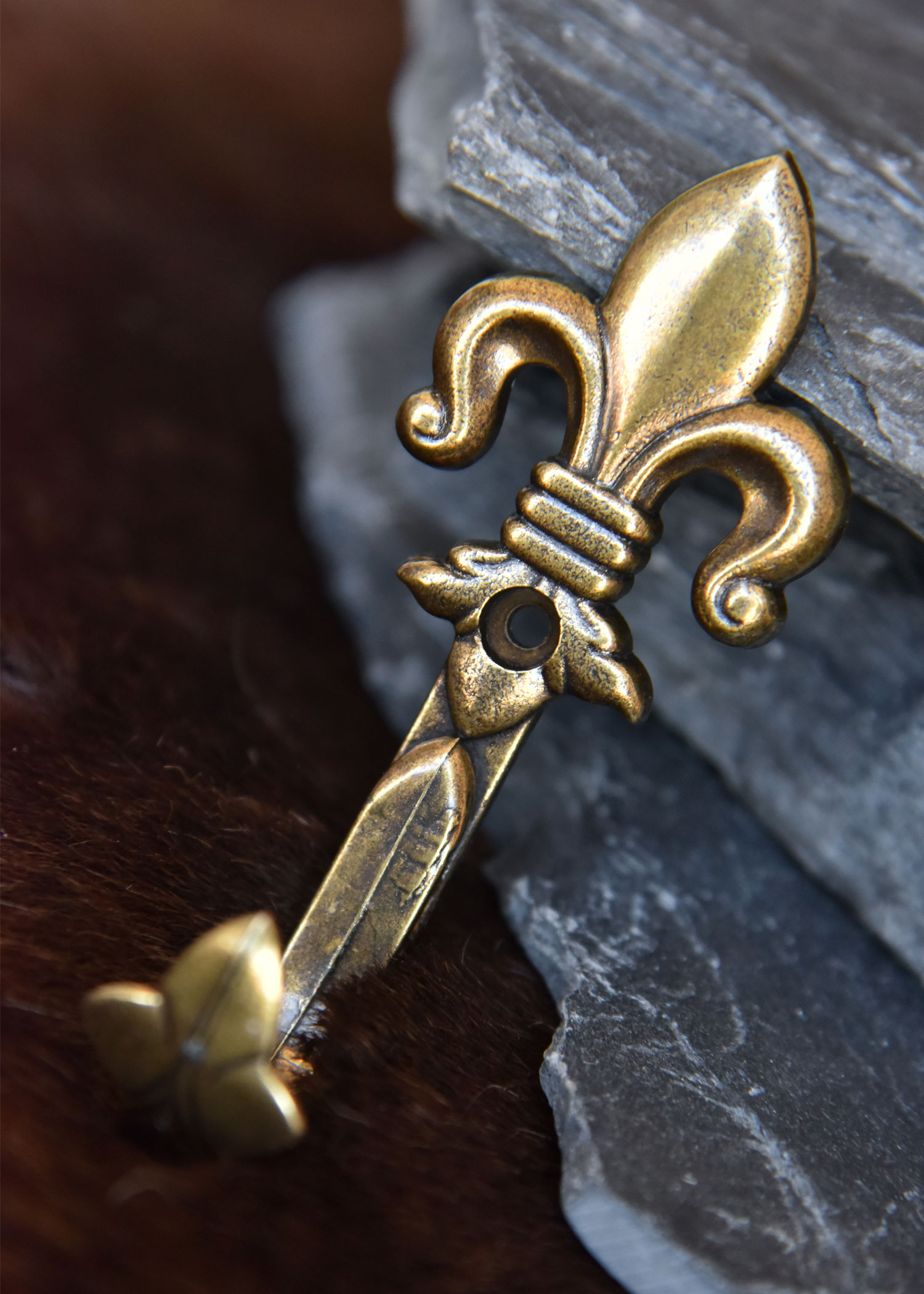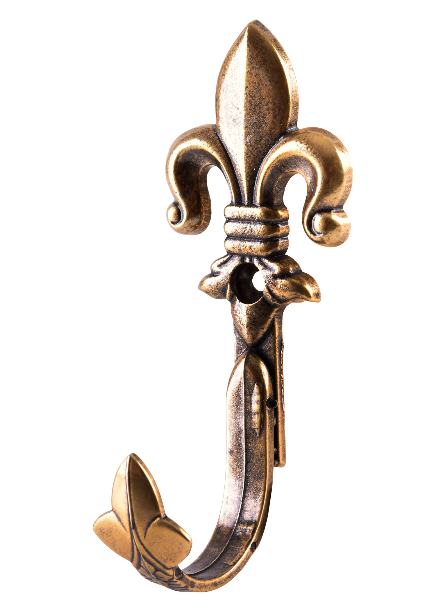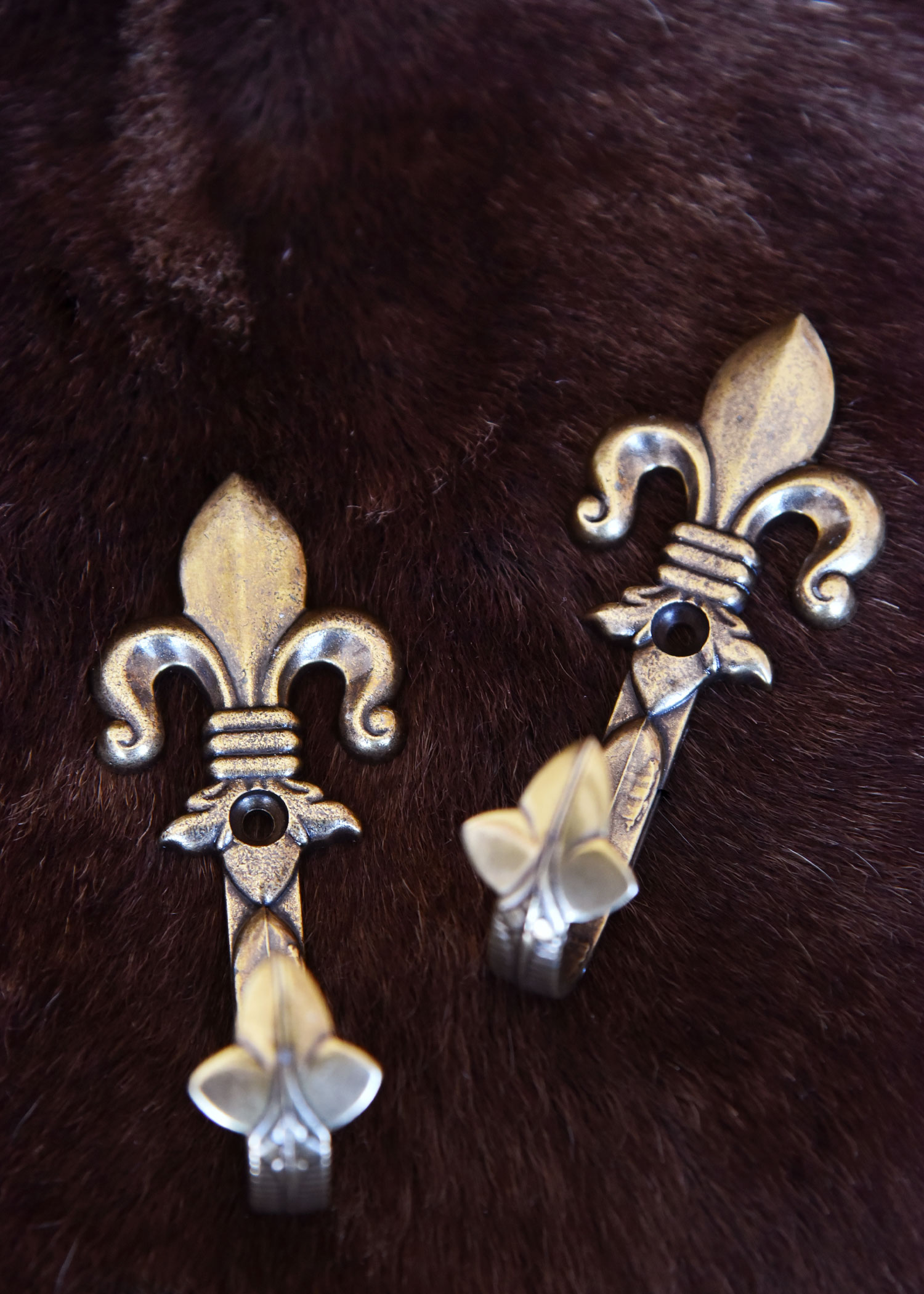 Diese sehr dekorativen Wandhalter in Form einer heraldischen Lilie (bekannt als fleur-de-lis oder fleur de lys) lassen sich mit nur einer Schraube an der Wand montieren. Paarweise verwendet bieten die Wandhaken eine perfekte Lösung zur Ausstellung / Aufbewahrung von Pistolen, Gewehren oder andere .