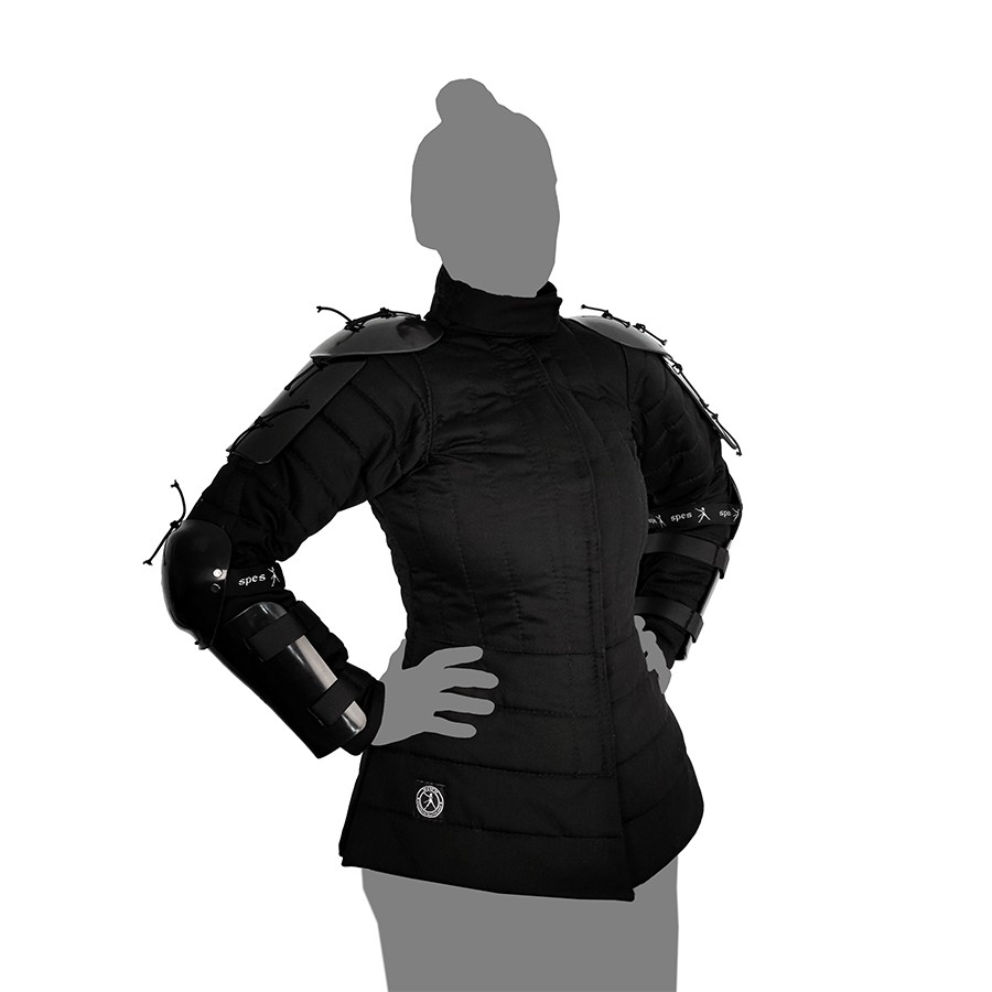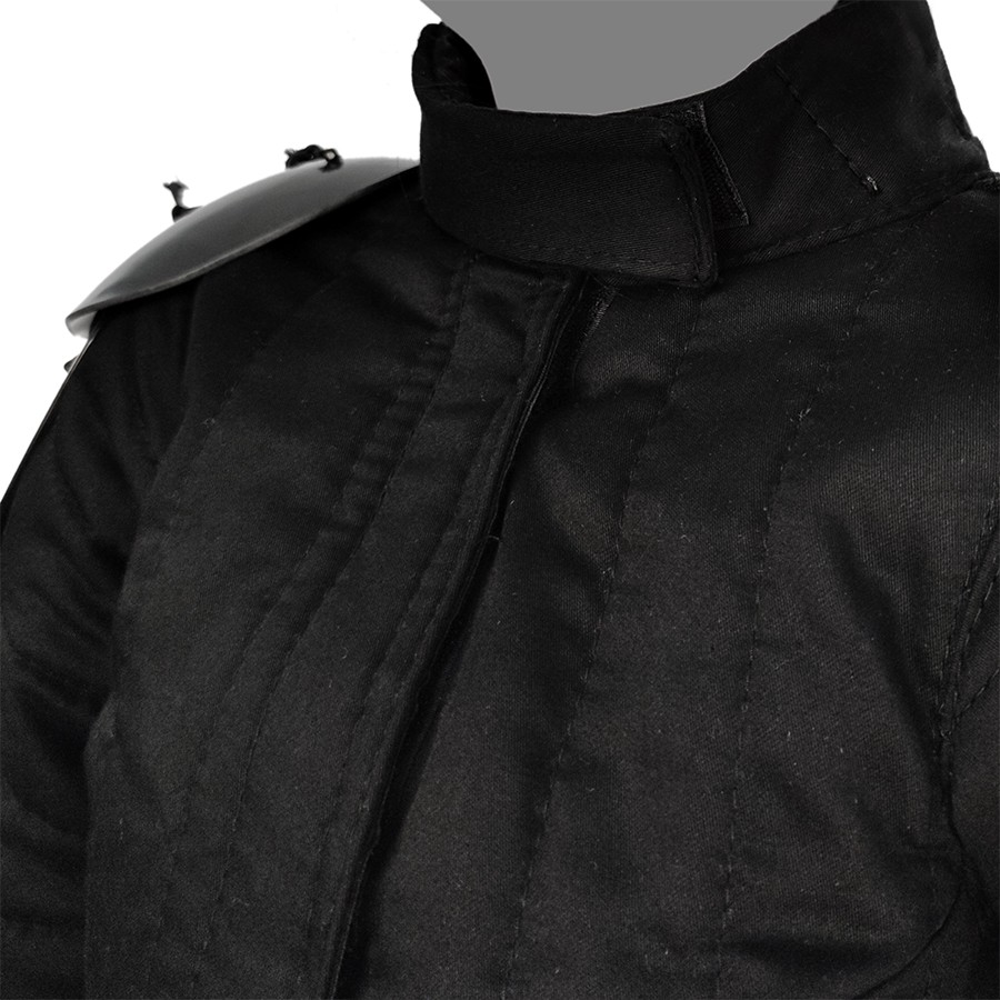 Der Kragen ist mit einem Klingenfänger ausgestattet. Die FG PRO ist aus 350N durchstichfestem Gewebe hergestellt. Die im Set enthaltenen PRO-Overlays sind speziell profiliert und sorgen für eine vollständige Polsterung der Arme.