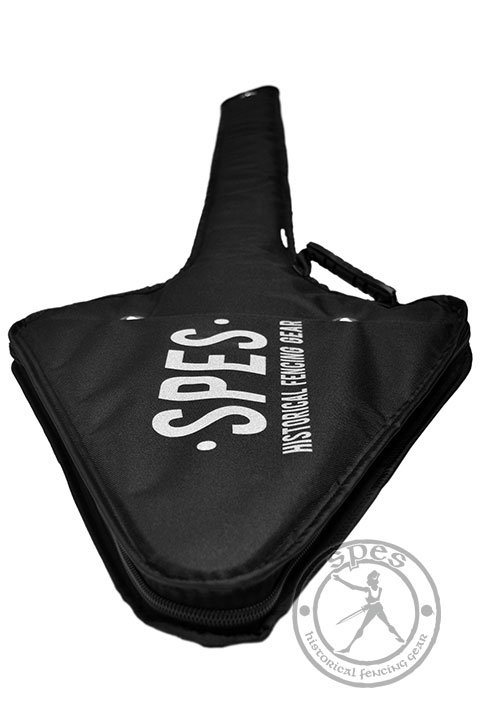 wasserdichtem Stoff mit der Aufschrift "SPES Historical Fencing Gear".