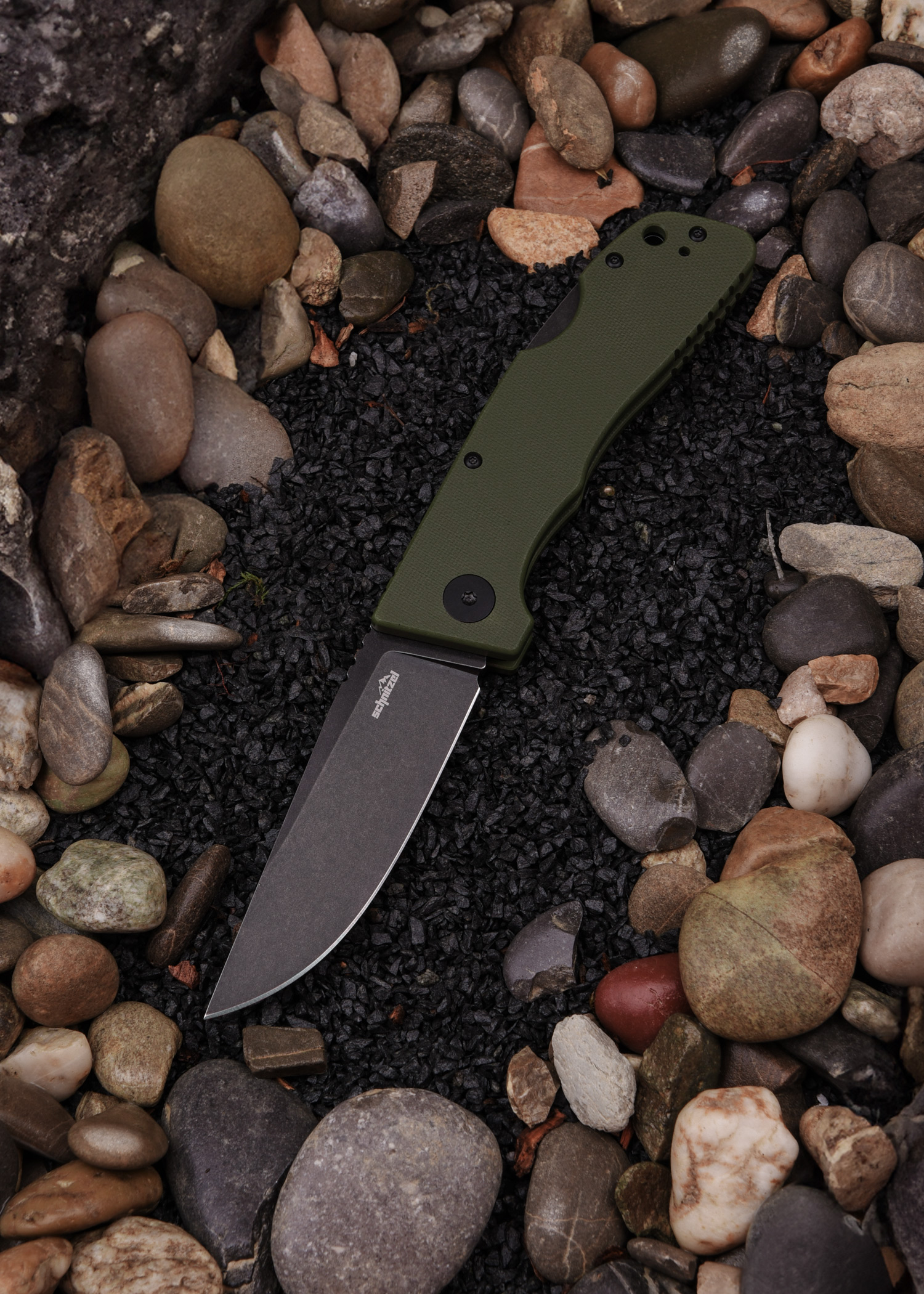 Die Klinge des Kvar ist aus dem bei uns schon bekannten Schwedenstahl Sandvik 14c28n gefertigt und ist ca. 9,2 cm lang. Das Finish der Klinge ist je nach Variante stonewashed oder blackwashed (Vacuum Titanium Coating). Sie ist ca. 3,7 mm dick, ist flach geschliffen und läuft auf Washern aus Bronze. Wie schon beim Tri sind die flachen Griffschalen aus rutschfestem und robusten G-10 hergestellt. Zur zusätzlichen Verstärkung der 13,4 mm breiten Griffkonstruktion sind innerhalb der Griffschalen stabile Liner aus Edelstahl verbaut. Der Taschenclip lässt das Kvar sicher aufbewahrt in deiner Hosentasche verschwinden und ist auch für Linkshänder nach Belieben umsetzbar.