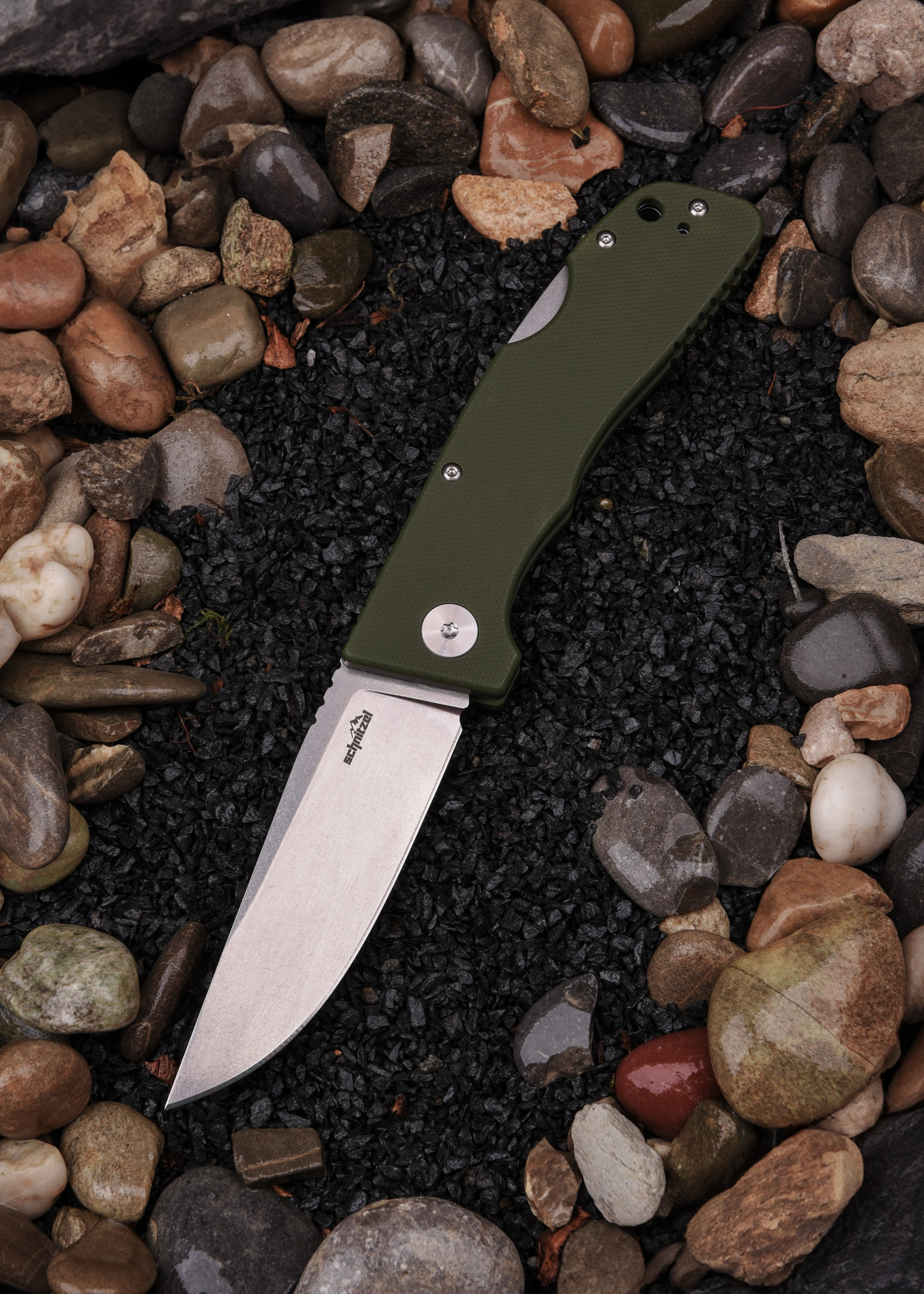 Schnitzel KVAR, Outdoor Taschenmesser, grün, stonewashed