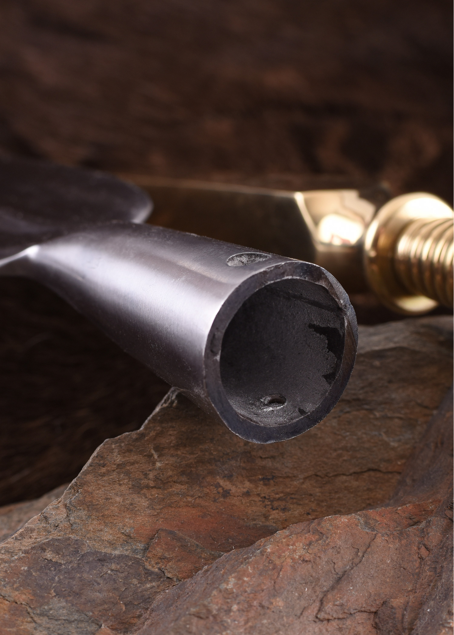 Das hier angebotene griechische Speer-Set beinhaltet eine blattförmige Speerspitze aus Stahl mit stumpfen Kanten und einen Speerfuß aus gegossenem Messing mit klassischem, vierseitigem Design und scharfer Spitze. Da beide bereits mit Bohrungen versehen sind, kannst Du sie an einem Holzschaft Deiner Wahl montieren, um so Deinen ganz eigenen Hoplitenspeer zu kreieren. Die Lieferung erfolgt ohne Schaft und Befestigungsmaterial.