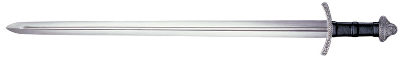 Die typischen Wikingerschwerter des 9. und 10. Jahrhunderts besaßen eine lange Klinge versehen mit einer breiten, mittigen Hohlkehle und zwei scharfen Schneiden. Die bevorzugte Kampfweise war ein harter Hieb oder ein schneidender Stoß. Die Schwertspitze war verhältnismäßig rund aber dennoch spitz genug, um auch damit stechen zu können. Eine einfache, nach vorne gebogene Parierstange wurde oft mit einem handlichen, lederbezogenem Holzgriff kombiniert, dieser konnte aber auch aus Knochen oder Metall hergestellt sein. Was aber das Wikingerschwert so unverwechselbar von seinen Zeitgenossen dieser Waffengattung machte, war der schwere, massive und oft verzierte Knauf, der es erst ermöglichte, die lange Klinge auszubalancieren. Das Cold Steel Wikinger-Schwert teilt viele dieser Besonderheiten mit seinem historischen Vorbild. Es hat eine zweischneidige Klinge, handgeschmiedet aus Karbonstahl und auf Hochglanz poliert. Der Holzgriff ist mit hochwertigem Leder umwickelt und begrenzt einerseits durch eine einfache aber elegante Parierstange und auf der anderen Seite mit einem gleichmäßigen und ansehnlichen aber massiven Knauf. Parierstange und Knauf sind mit traditionellen Knotenmustern verziert. Um die kühne, scharfe Klinge sicher aufbewahren zu können, kommt das Cold Steel Wikinger Schwert mit einer mit schwarzem Leder bezogenen Holzscheide. Die Scheide ist an den Enden mit Scheidenmundblech und Ortband (Endbeschlag) aus hoch poliertem Stahl geschützt. Details: - Klingenlänge: ca. 77 cm - Grifflänge: ca. 17cm - Gesamtlänge: ca. 94 cm - Klingenstärke: ca. 6 mm - Klingenmaterial: 1055 Karbonstahl - Gewicht: ca. 1039 g Achtung! Die Abgabe an Jugendliche unter 18 Jahre ist nicht zulässig. Bitte geben Sie deshalb Ihr Geburtsdatum in unserem Bestellformular an. Zusätzlich benötigen wir eine Kopie Ihres Personalausweises per E-Mail, Scan, Fax oder Post.