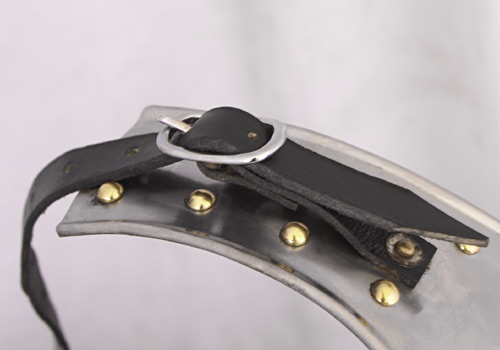 Tragbare Nachbildung eines mittelalterlichen Plattenpanzers aus Stahl. Inklusive zweier sich kreuzender Riemen am Rücken. Die Riemen sind mit Schnallen versehen uns damit größenverstellbar. Ein gut bemessener Armausschnitt gewährleistet ausreichende Armfreiheit. Details: - Material: 1,2 mm Stahlblech, Lederriemen - Brustumfang: ca. bis 125 cm - Bauchumfang: ca. bis 110 cm - Halsausschnitt (Durchmesser): ca. 18 cm - Länge: ca. 43 cm - Gewicht: ca. 2,95 kg Sicherheitshinweis: