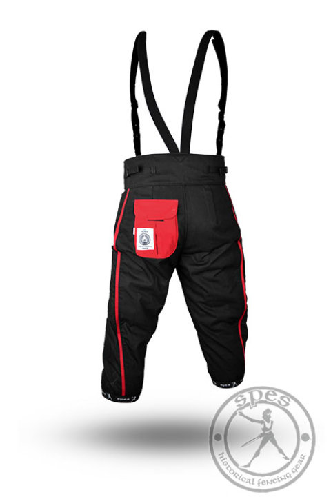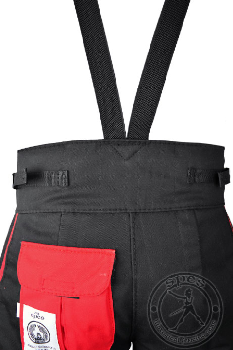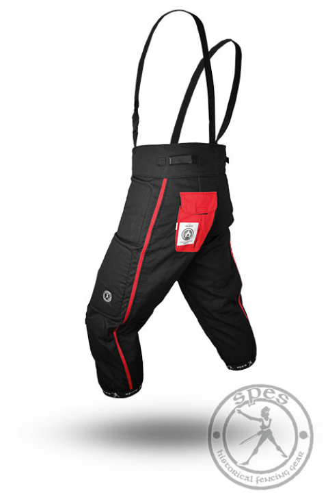 Außergewöhnliche Elemente dieser SPES-Ausrüstung sind rote Seitenverzierungen und eine rote Rückentasche. Dieses einzigartige Design hebt einen Benutzer bei jeder HEMA-Veranstaltung hervor.