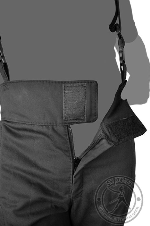 Der Stoff dieser HEMA-Kleidung hat ein 800N-Zertifikat. Das Besondere an dieser Hose ist ein breiter Mittelteil, der einen Unterbauch abdeckt und das Verletzungsrisiko während des HEMA-Trainings senkt. Diese HEMA-Ausrüstung hat sowohl Klettbänder als auch einen Reißverschluss. Dank des verstellbaren Riemens und der Hosenträger können Sie es problemlos an Ihren Körper anpassen.