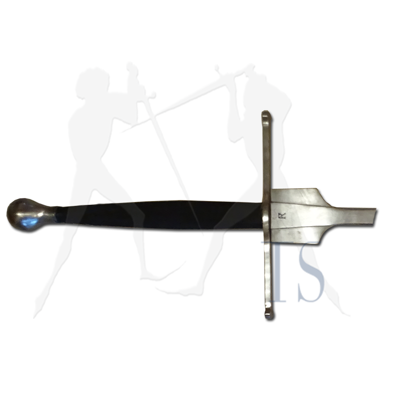 TRNAVA Federschwert TS by Peter Regenyei Type3B The blade is made of 50HRC spring steel, is not too rigid, it bends by thrust. the blade is a type b) A harder, jet flexible strong blade it was planned for full-contact fighting in full protection. The blade is firm, the area of the backhammered tip is about 1 cm x 1 cm. This type of tip helps to distribute the power of the thrust on a larger area, making it safer in free sparring. Blade: type B - harder-version Pommel: pear shaped Grip: black painted cord weight: approx 1400g total length: 1340 mm langth blade: 990 mm length of the crossguard: 250 mm length of the grip (incl. pommel): 340 mm pow: 90 mm Customized Feders and other types are available on request