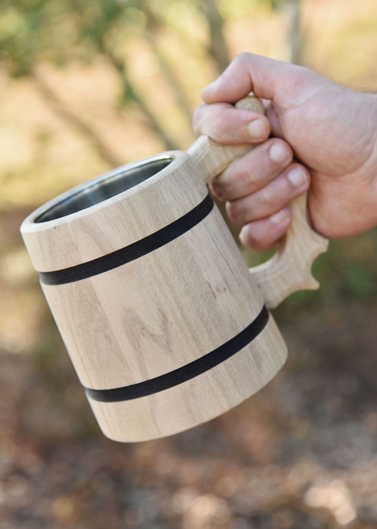 The steel inlay was built in for hygienic reasons, so that you may enjoy your favourite beer (or mead) to the fullest. Please note that it is not suitable for dishwashers and should be cleaned before first use (and after each use). Aggressive cleaning agents should be avoided.